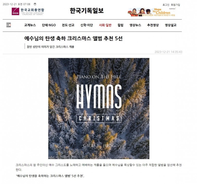 Piano on the Hill _ Christmas Hymns (음원) https://tinyurl.com/3jcd5cjp